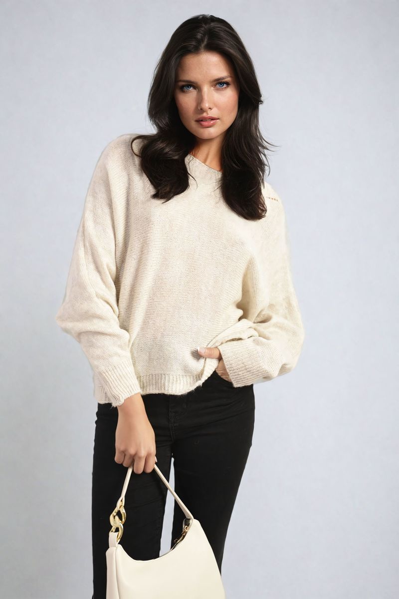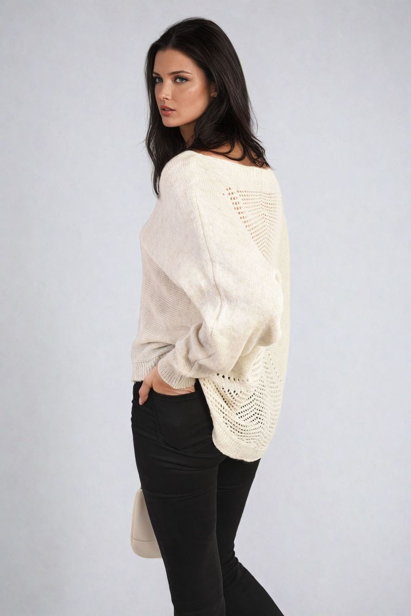 Wrap yourself in cozy style with the Florencia Crew Neck Back Patterned Knitted Jumper. This comfy jumper is perfect for keeping warm while looking effortlessly chic. With its unique back pattern, it adds a fun twist to your outfit, making it a must-have for any casual day out. Ideal for layering or wearing on its own, it's your go-to for both comfort and style.