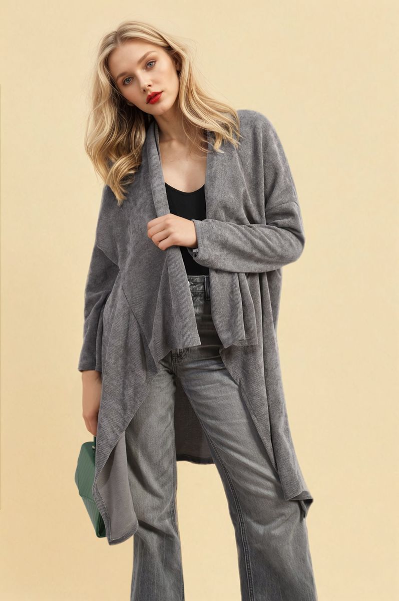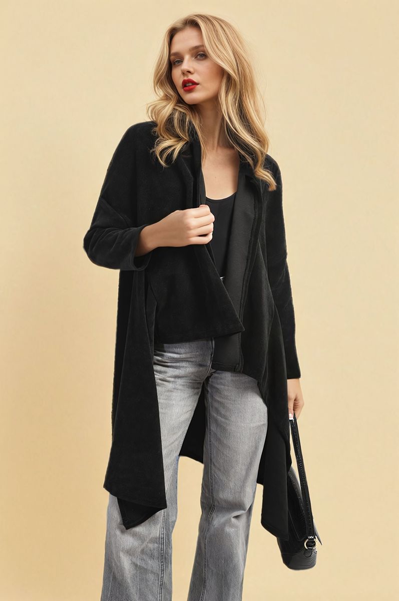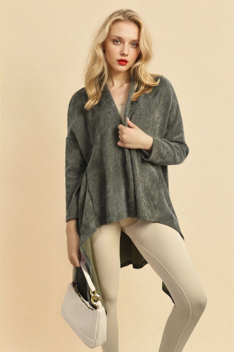 Open Front Long Back Knitted Cardigan