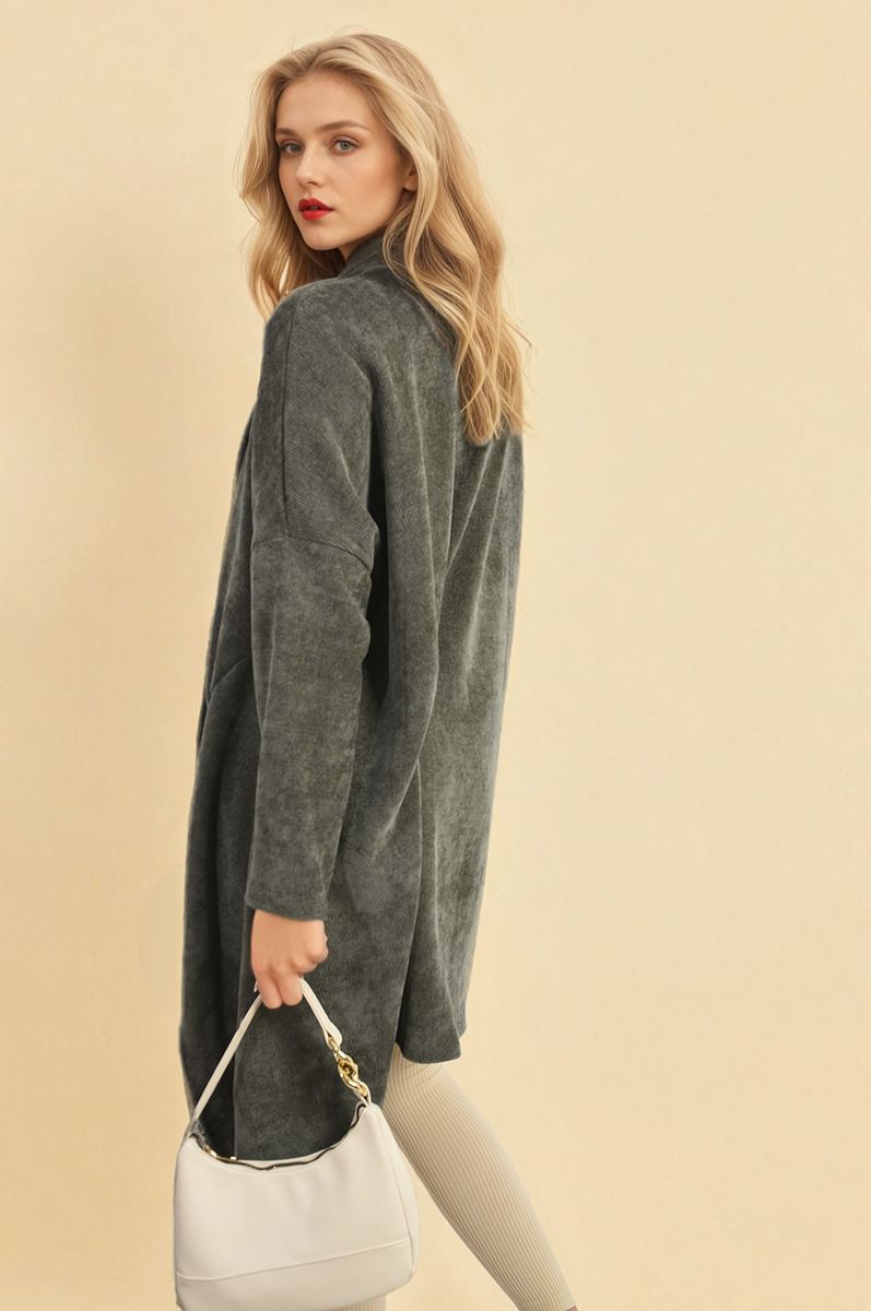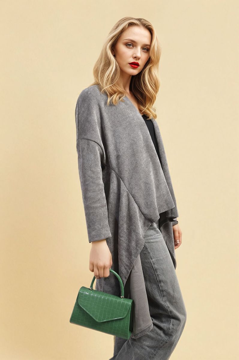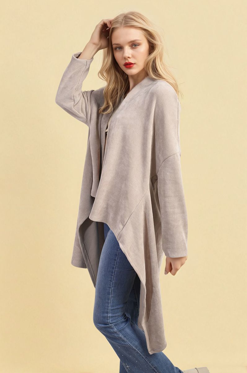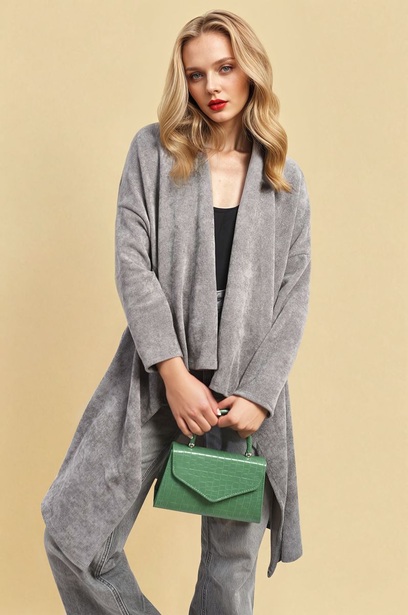 Open Front Long Back Knitted Cardigan