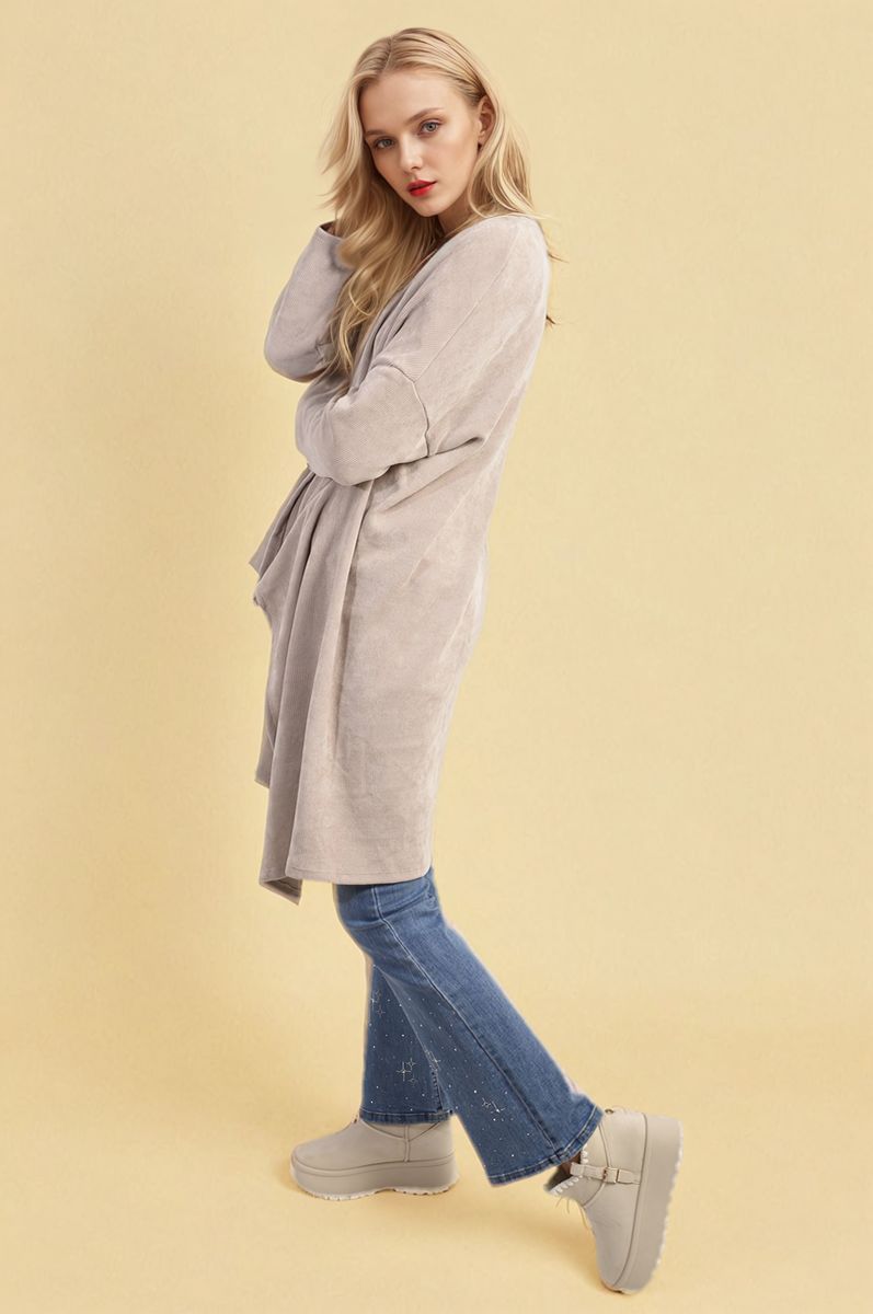 Wrap yourself in style with the Lydia Open Front Long Back Knitted Cardigan. Its flowy design and cozy knit make it perfect for any outfit, whether you're dressing up or keeping it casual. Toss it on for an extra layer of warmth and enjoy looking effortlessly chic all day.