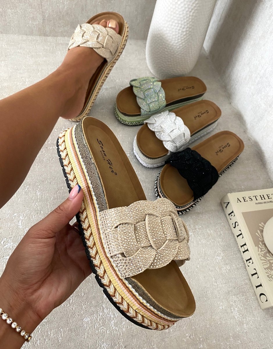 Introducing the Erin Open Toe Embellished Strap Slide Platform Sandals – where fashion meets fun under the sun! ☀️?