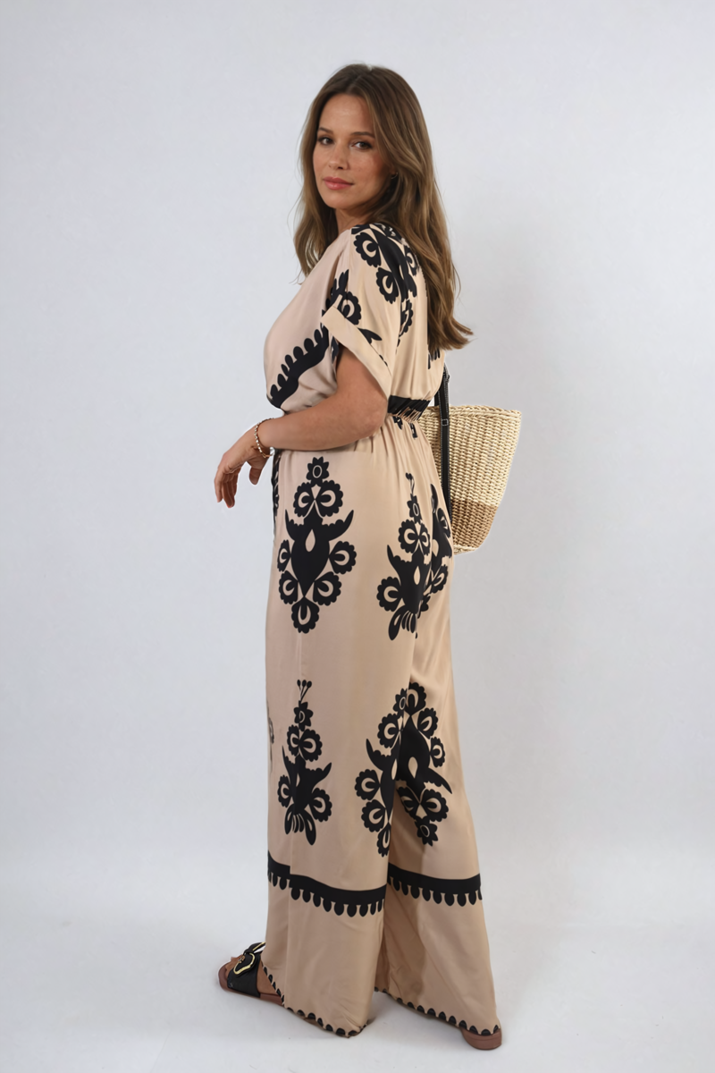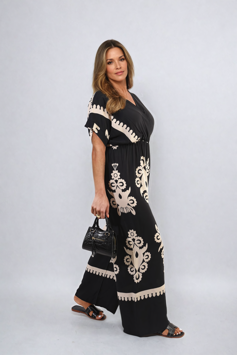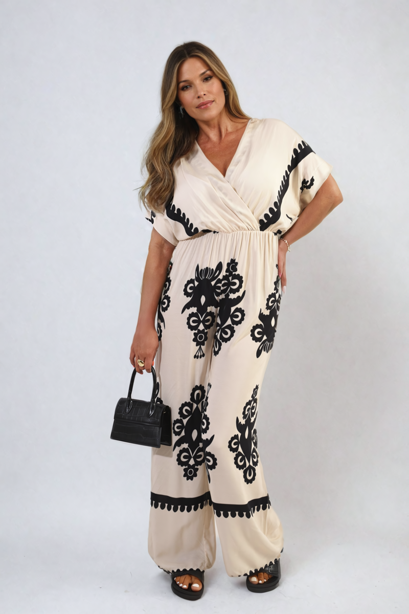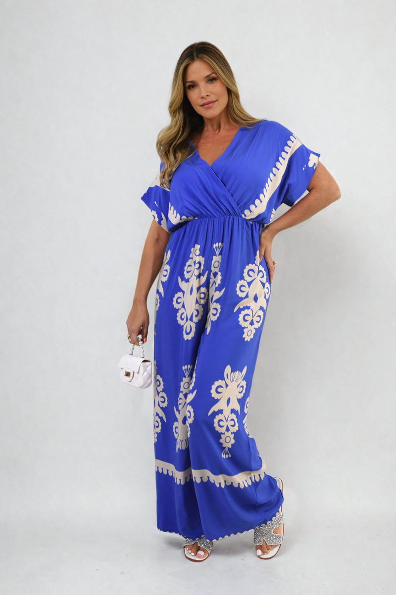 The Romina jumpsuit features a striking print that adds a touch of flair to your wardrobe. The cross-front design creates an alluring and sophisticated neckline, making it a standout piece for any occasion. ?