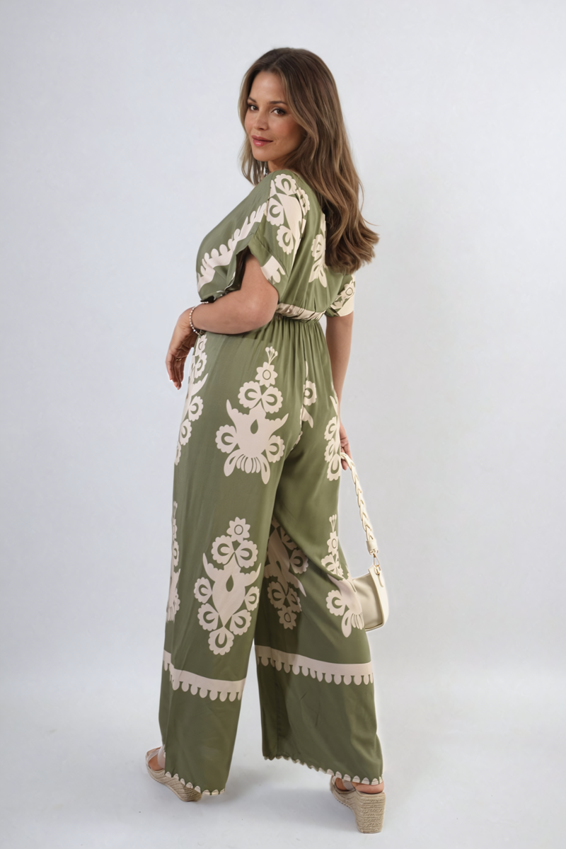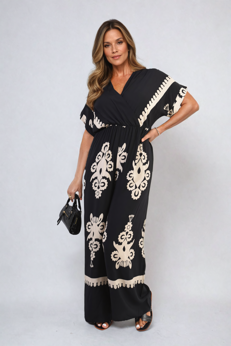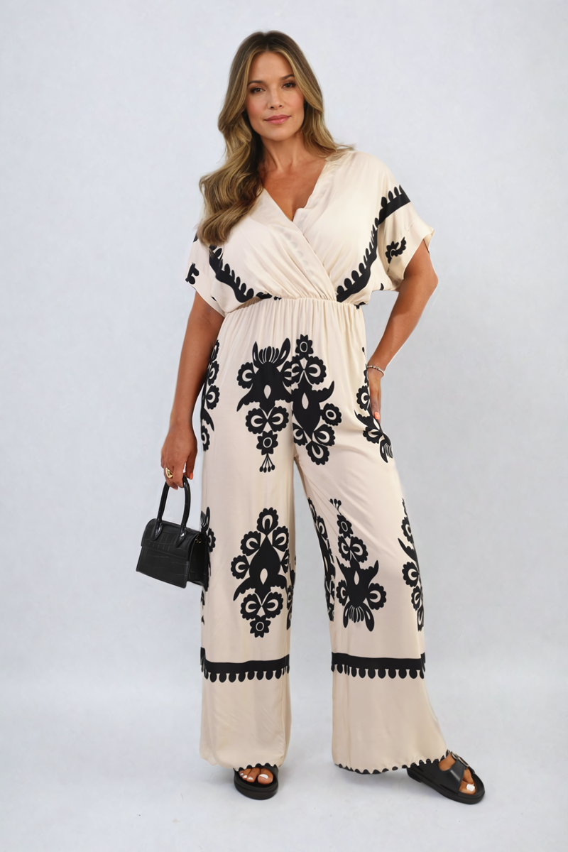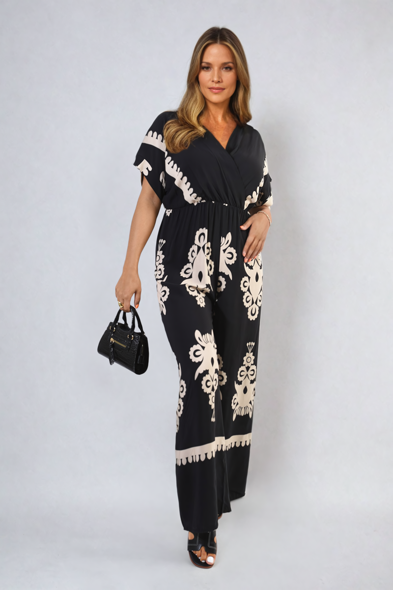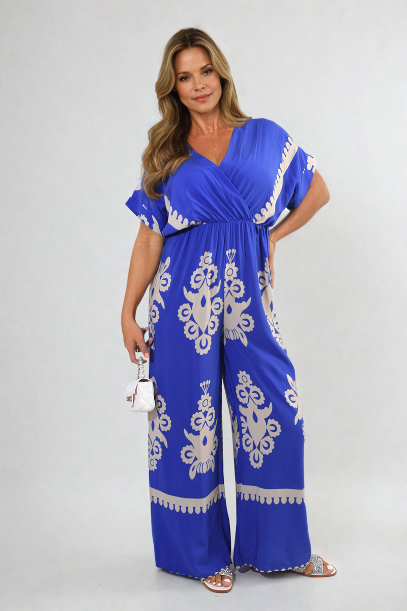 Whether you're attending a summer soiree ?, a brunch date ☕, or a night out on the town ?, the Romina Printed Cross Front Wide Leg Jumpsuit is your go-to outfit. Pair it with heels or sandals and accessorize with statement jewelry to complete your look. ??
