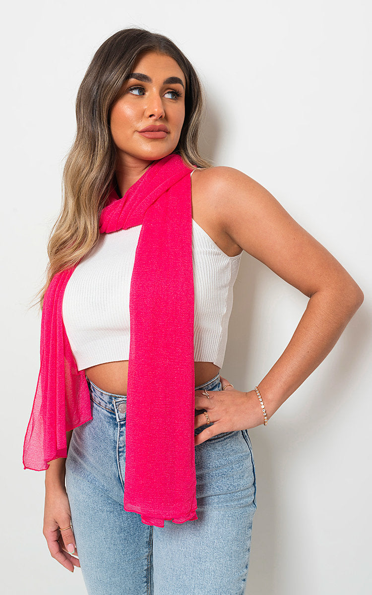 Glam up your summer style with the Liyana Shiny Glitter Summer Silk Wrap Scarf! ?