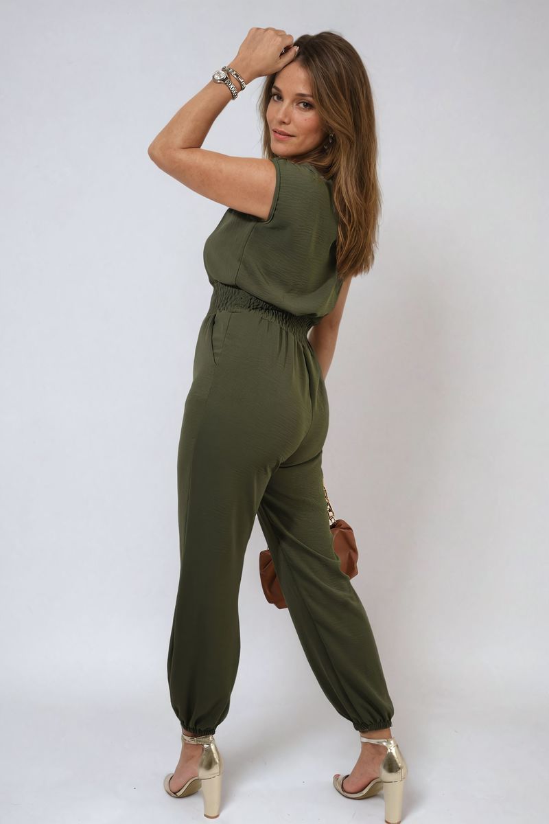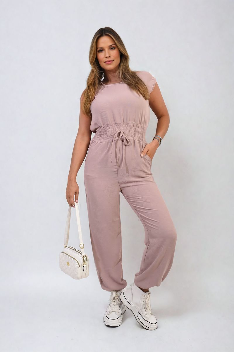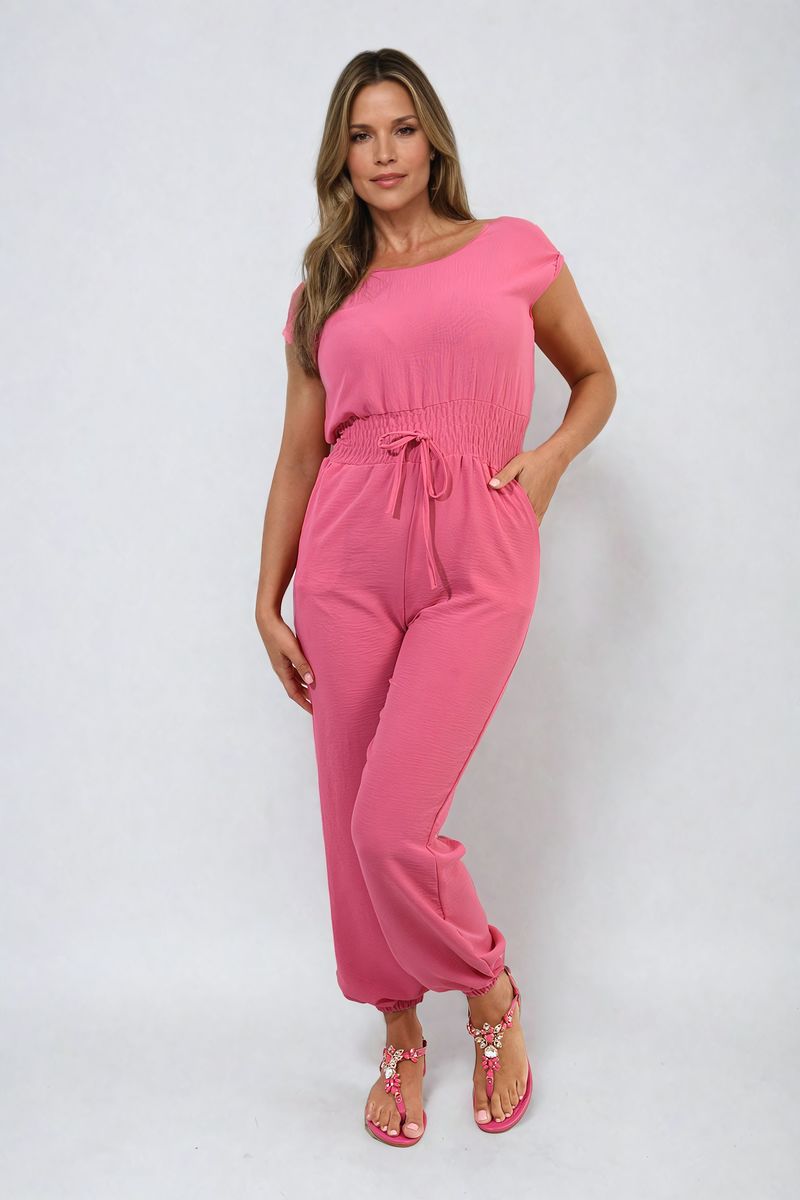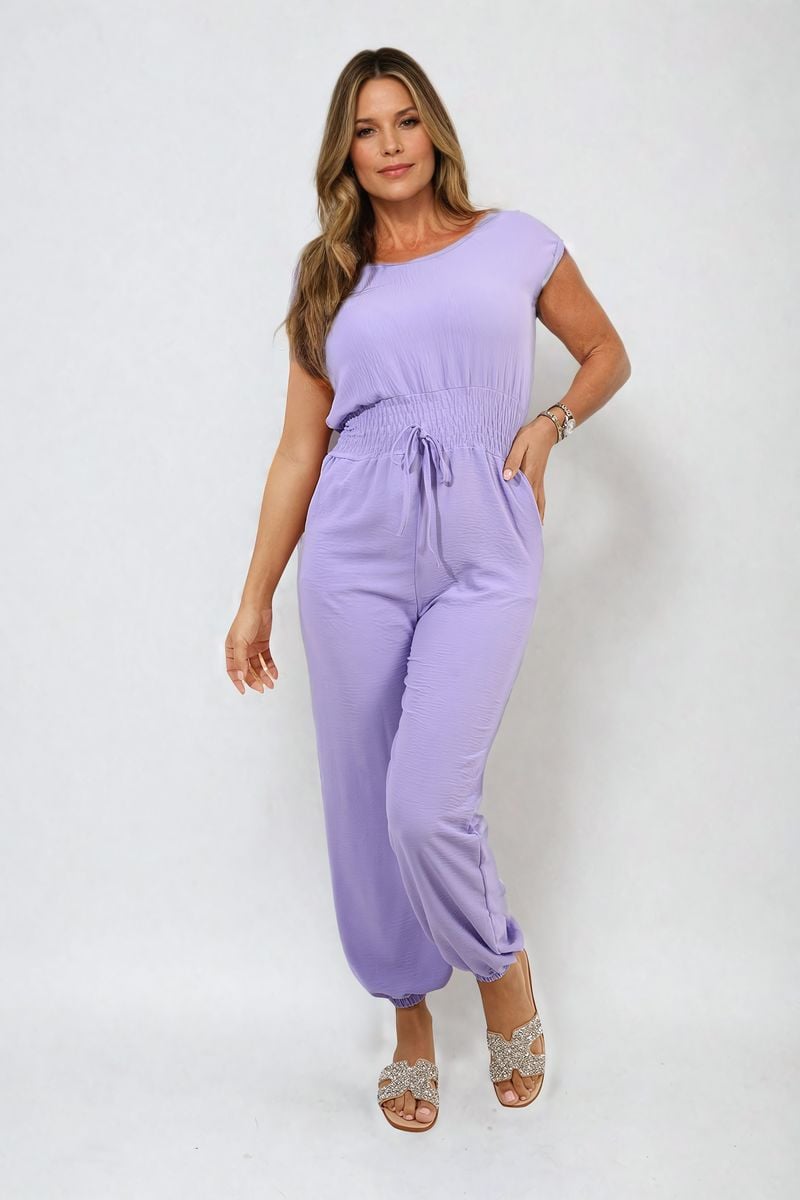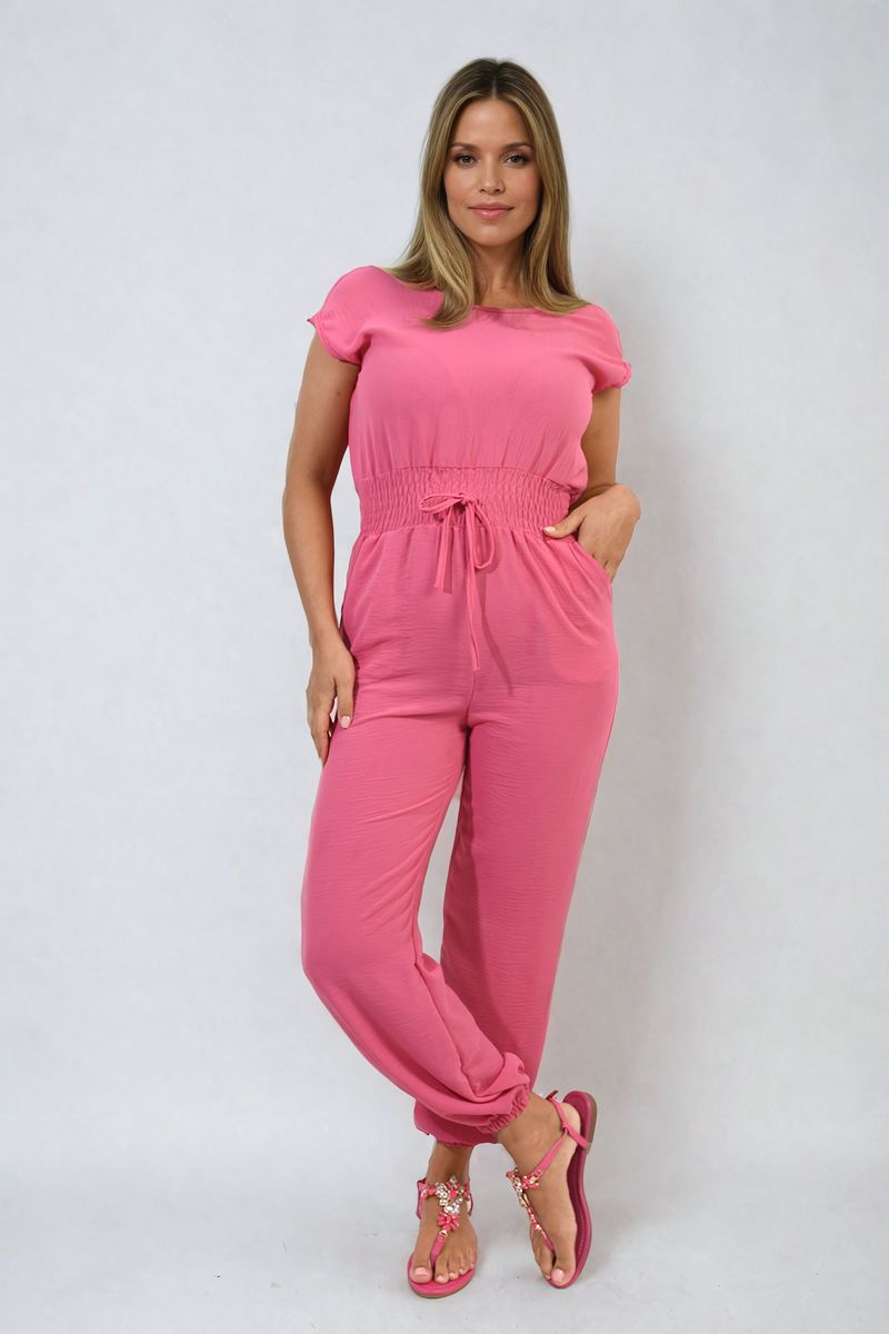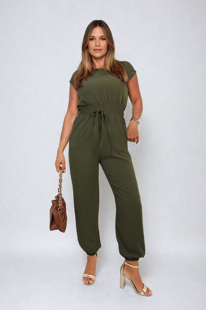 Crafted from a soft, breathable fabric, the Florence Jumpsuit promises all-day comfort without compromising on style. The short sleeves offer a chic, casual touch, while the cinched waist design accentuates your figure, creating an effortlessly flattering silhouette that exudes confidence. Whether you're heading to the office or stepping out for a dinner date, this jumpsuit ensures you'll look polished and feel comfortable.