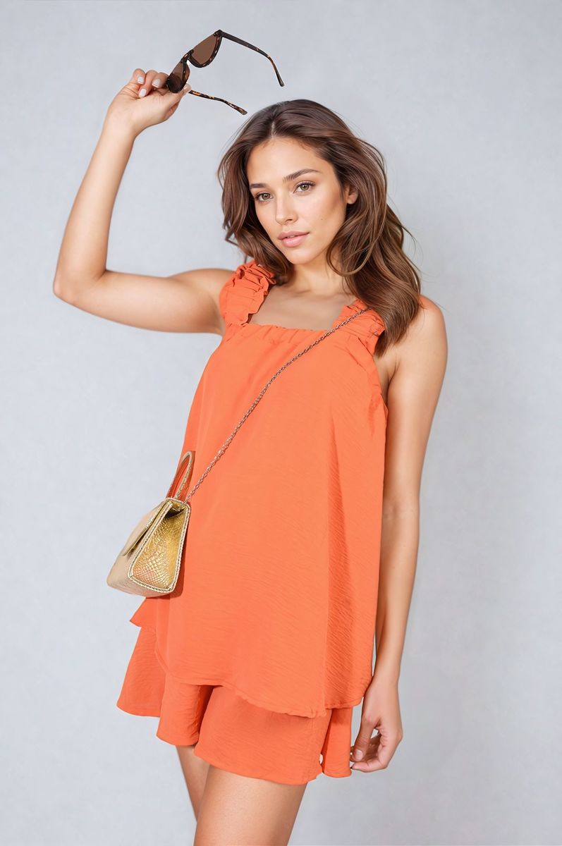 Square-Neck Ruffle Sleeveless Top & Shorts Co-ord